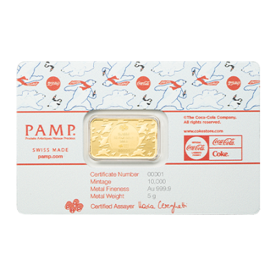 5g Coca-Cola Holiday Polar Bear Gold Bar I PAMP Suisse
