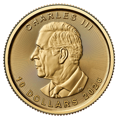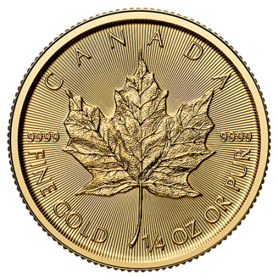 The 2026 1/4oz Maple Leaf is a Canadian gold coin produced by the Royal Canadian Mint, struck in 999.9 fine gold (24 carat) and weighing 7.78 grams. It has a diameter of 22mm and a face value of 10 Canadian Dollars.