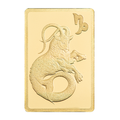 This collectible gold bar is part of PAMP’s Zodiac series and celebrates the Capricorn sign. The piece has a total gold weight of 0.5 grams with a purity of 999.9 fine gold.