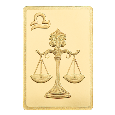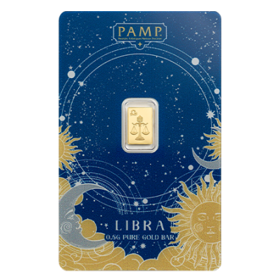 This collectible gold bar is part of PAMP’s Zodiac series and celebrates the Libra sign. The piece has a total gold weight of 0.5 grams with a purity of 999.9 fine gold.