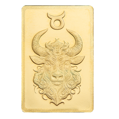 This collectible gold bar is part of PAMP’s Zodiac series and celebrates the Taurus sign. The piece has a total gold weight of 0.5 grams with a purity of 999.9 fine gold.